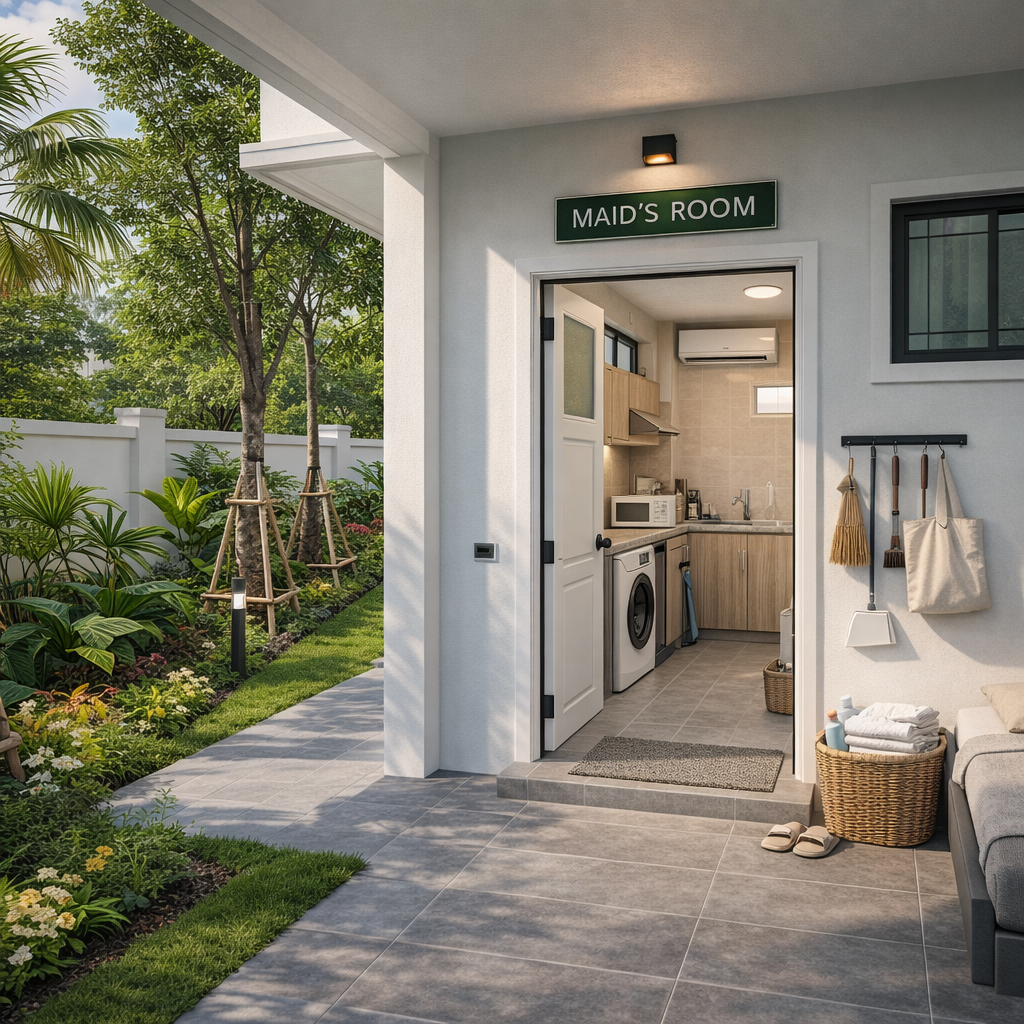 หากเราพิจารณาแปลนบ้านชั้น 1 ของโครงการโฮมการ์เด้นวิลล์ จะพบการออกแบบที่ชาญฉลาดโดยการแยก "ห้องแม่บ้าน" (Maid's Room) ไว้ทางด้านหลังบ้านติดกับพื้นที่ซักล้าง (Washing Area). การจัดวางพื้นที่เช่นนี้ช่วยแบ่งสัดส่วนการทำงานของเจ้าหน้าที่ดูแลบ้านออกจากพื้นที่ใช้สอยหลักของครอบครัวอย่างชัดเจน ทำให้เกิดความเป็นส่วนตัวสูงสุดสำหรับผู้อยู่อาศัยทุกคน